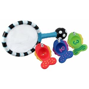 Sassy Catch and Count Net is a developmental learning toy that makes bath time fun. The three fish double as scoopers and strainers, and include numbers to learn counting. Easy to grasp net and fish are sized for baby's hands and help to develop hand and eye coordination. Multiple textures engage baby's sense of touch. And bright contrasting colors aid baby's in visual development. 6 + months